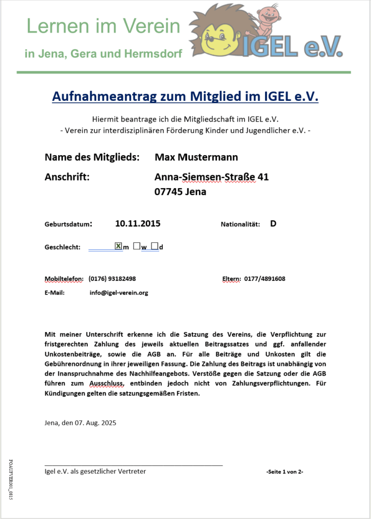 Fördermitgliedschaften unterligen den satzungsgemäßen Regeln. Mitgliedschaften im Igel e.V. sind nach einer 6-monatigen Mindestlaufzeit immer zum Ende des übernächsten Kalendermonats kündbar (bei monatlicher zahlweise im Lastschriftverfahren)